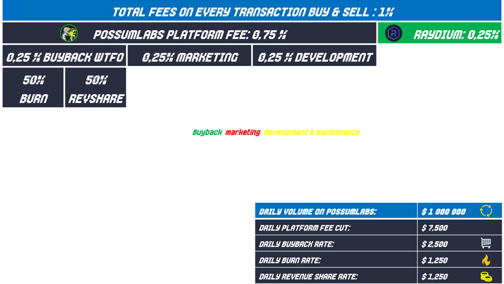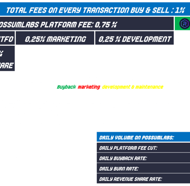 The possumlabs frontend services (possumlabs.wtf) does not charge any fees in addition to those above. If you access the possumlabs.wtf platform or smart contracts via another interface or platform, you may incur additional fees charged by those interfaces or platforms.